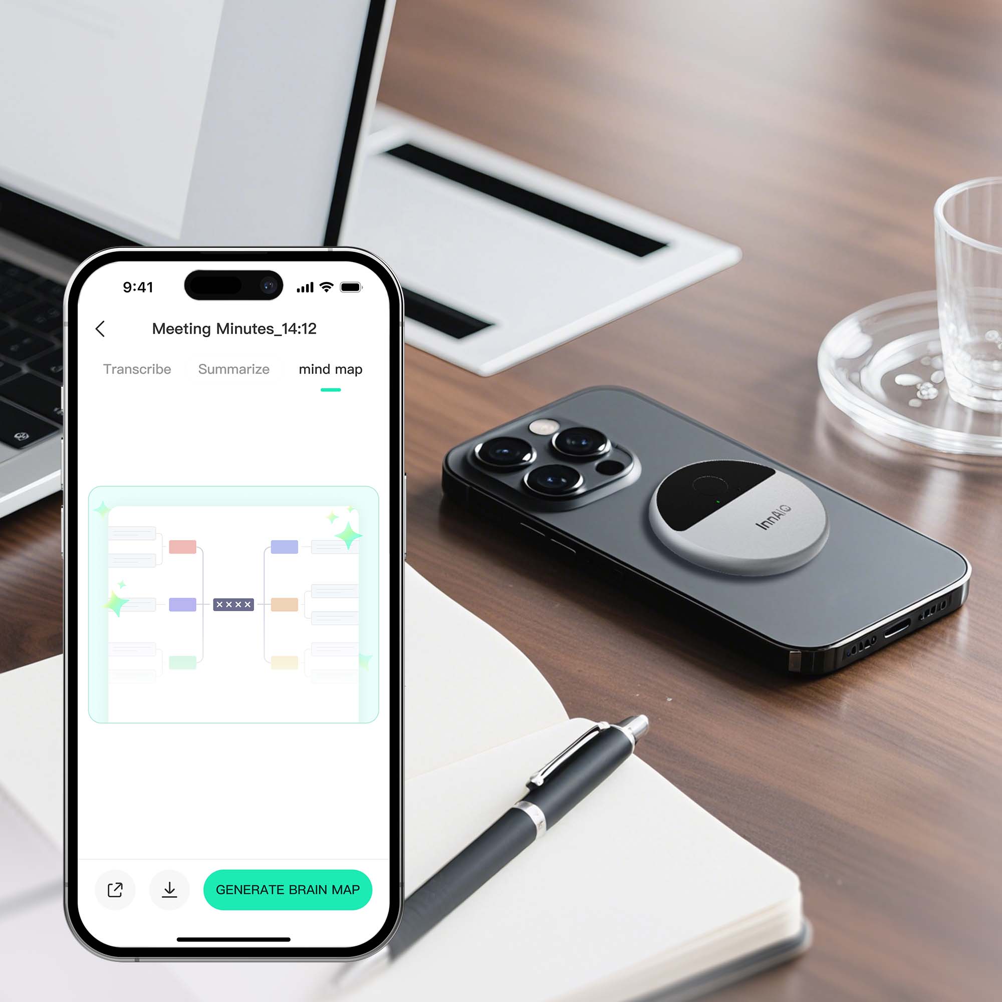 Enhance communication in business, travel, or daily life with InnAIO. Instantly translate photos and text, enjoy face-to-face translation, and use Meeting Minutes to record and store conversation notes. Includes mind map support for brainstorming.