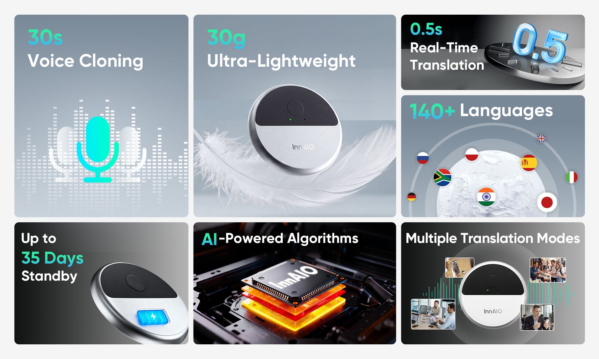 InnAIO T10 AI Voice Cloning Translator